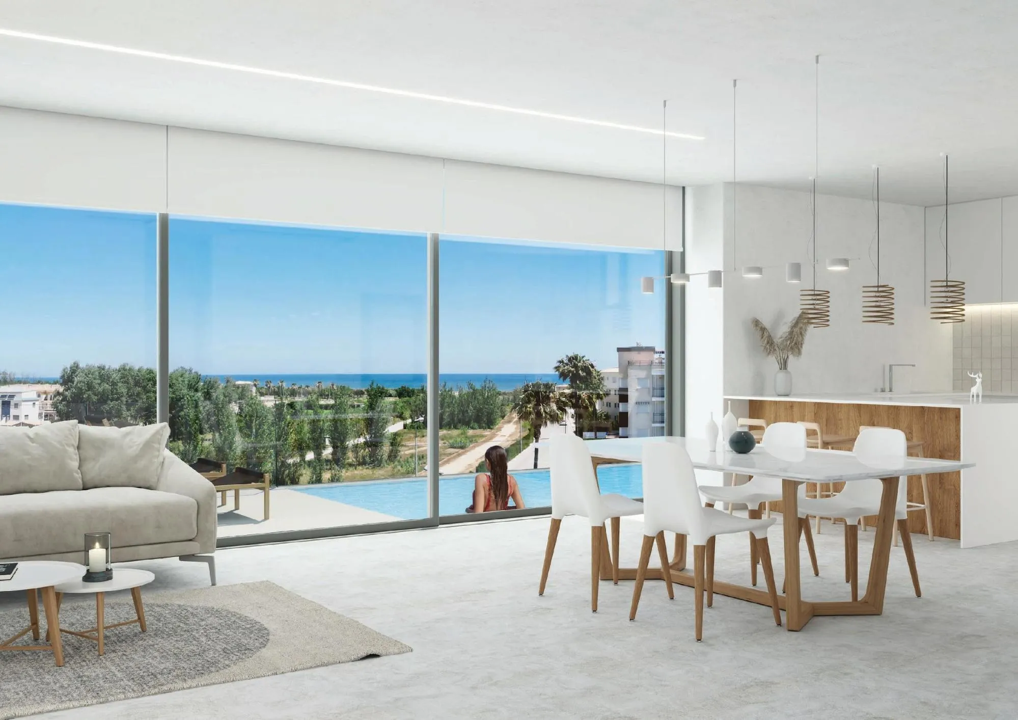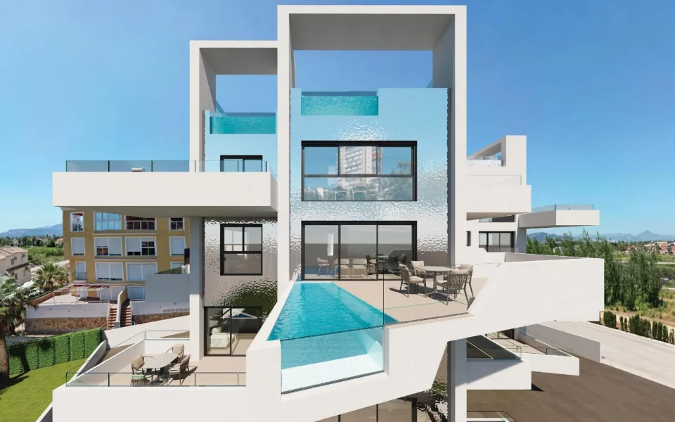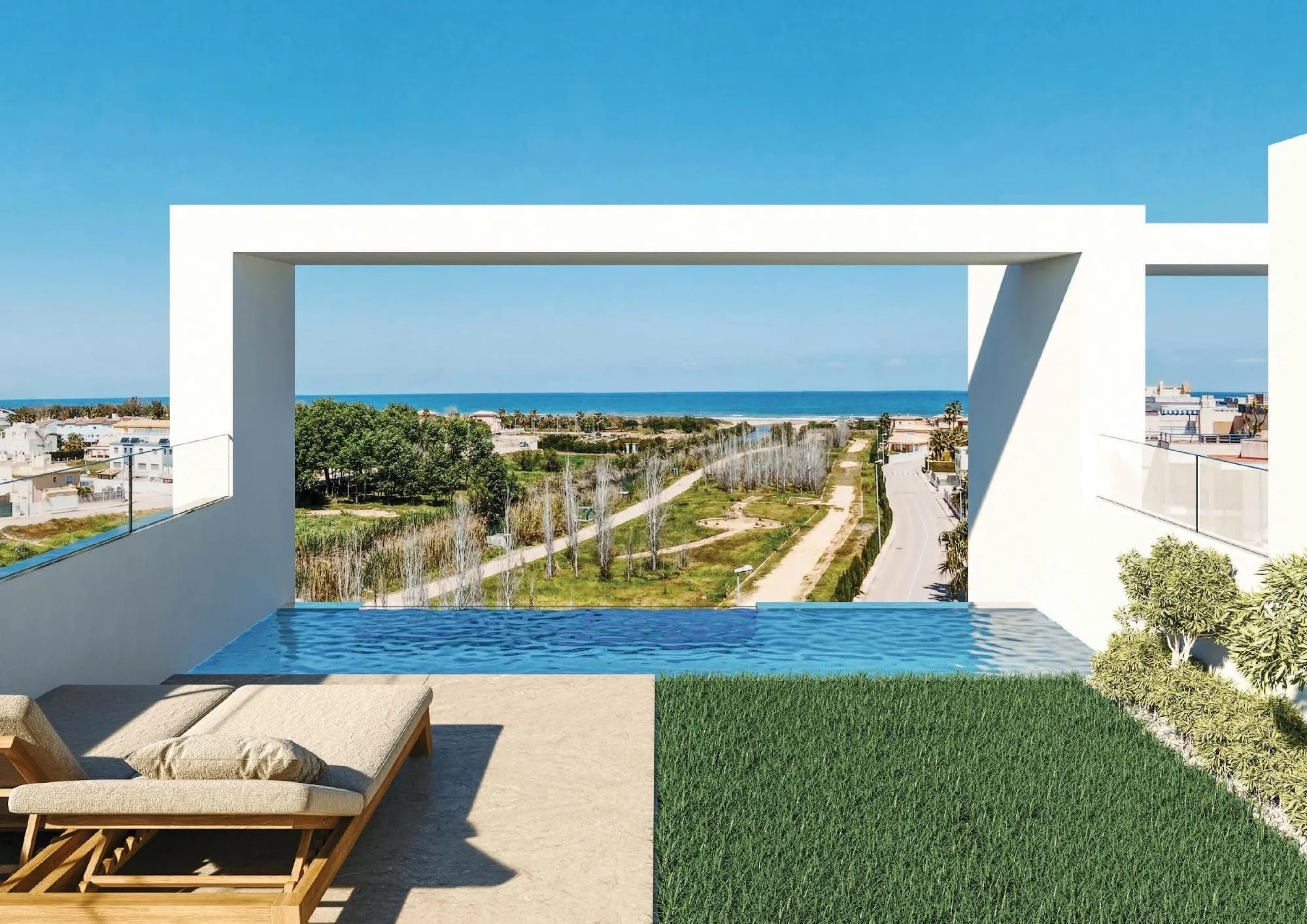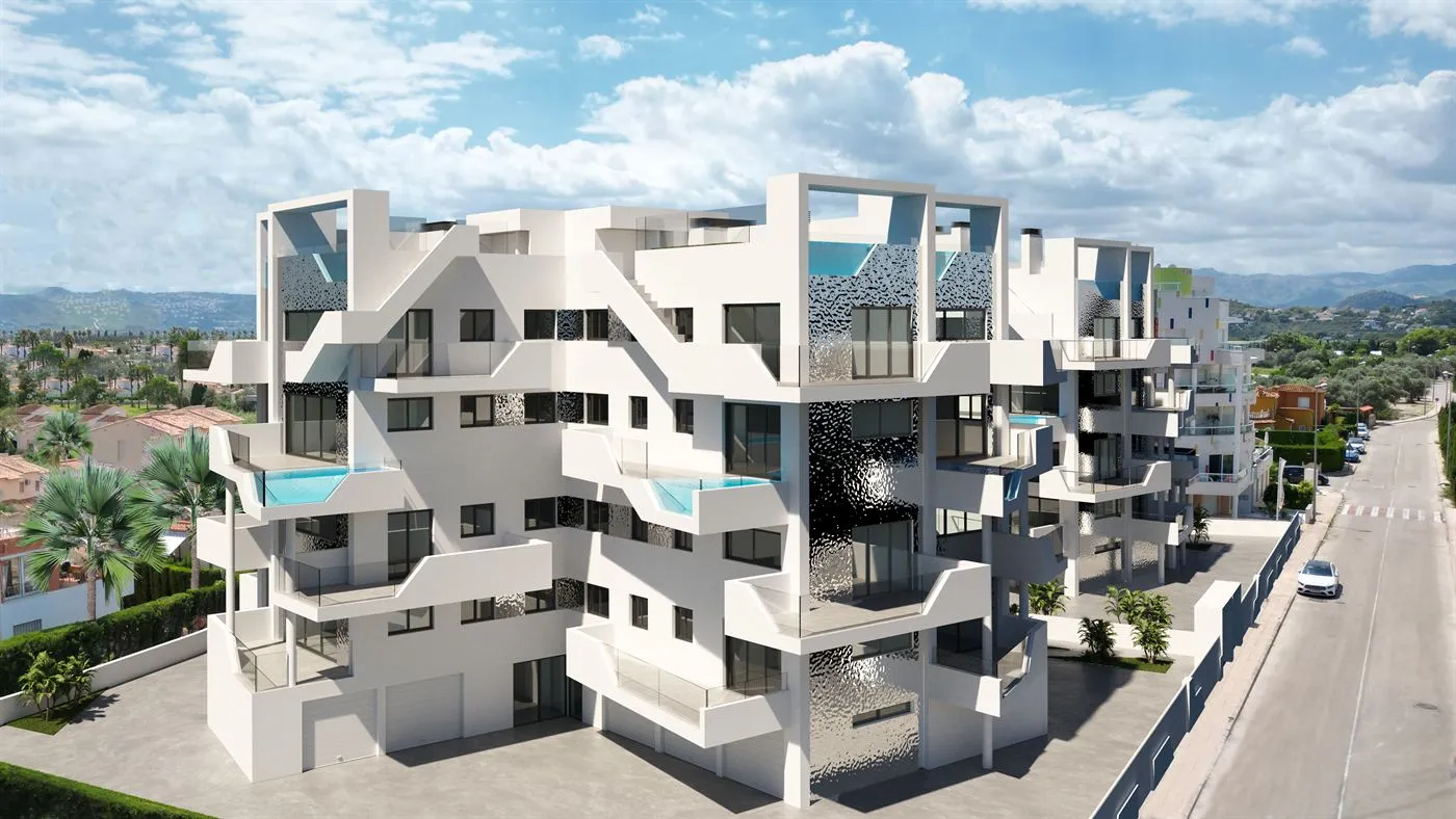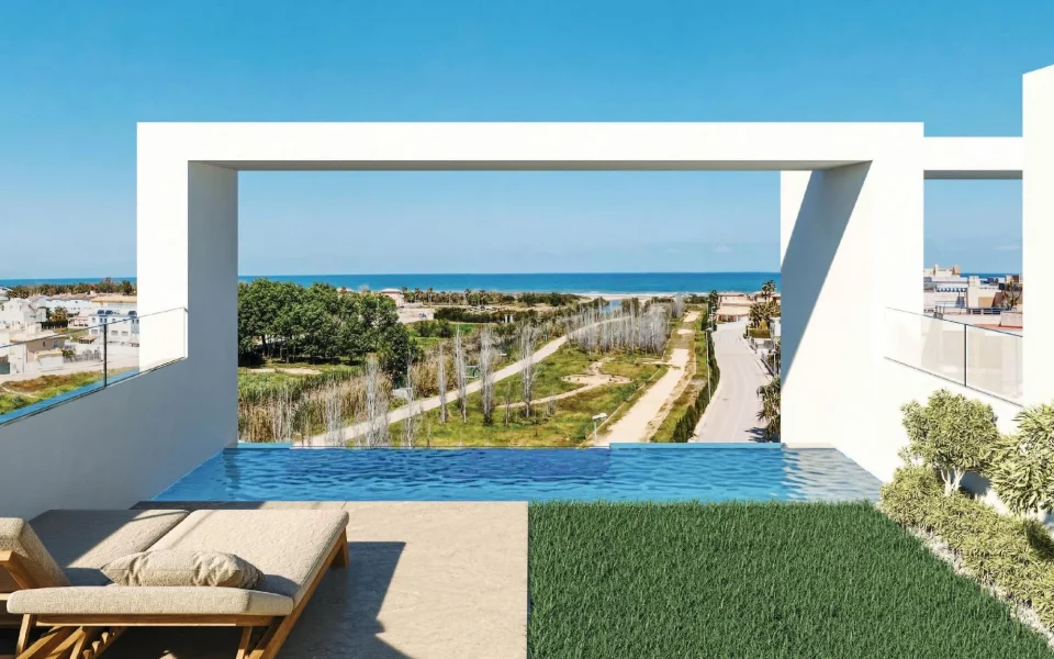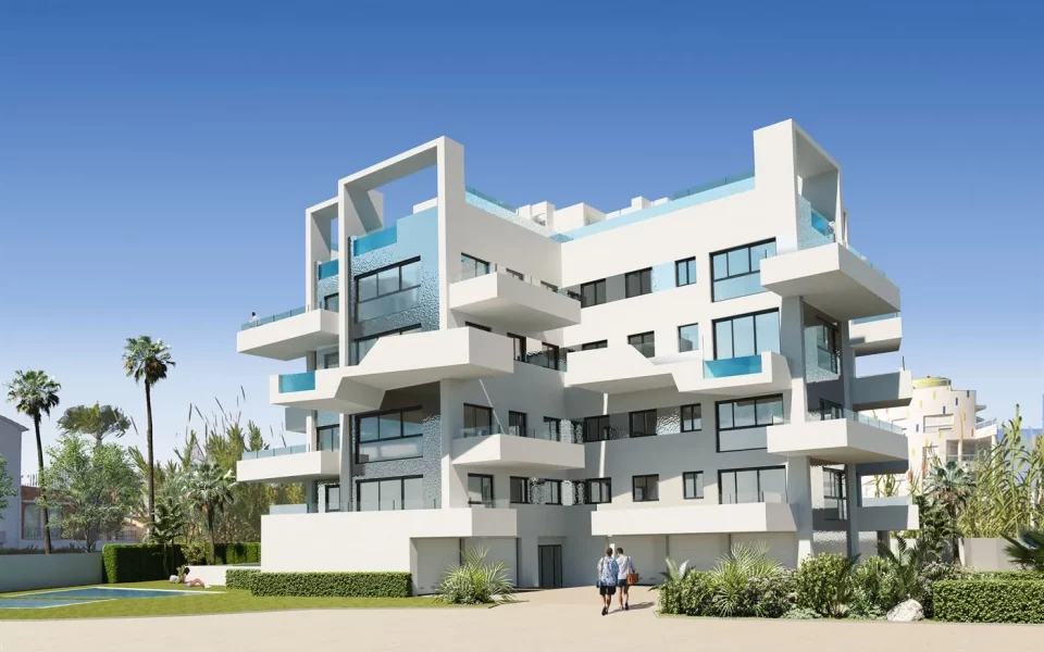 In this new beachside building in Oliva, exclusivity and comfort come together in a privileged setting, close to the sea and just a stone’s throw from the golf course and equestrian center.