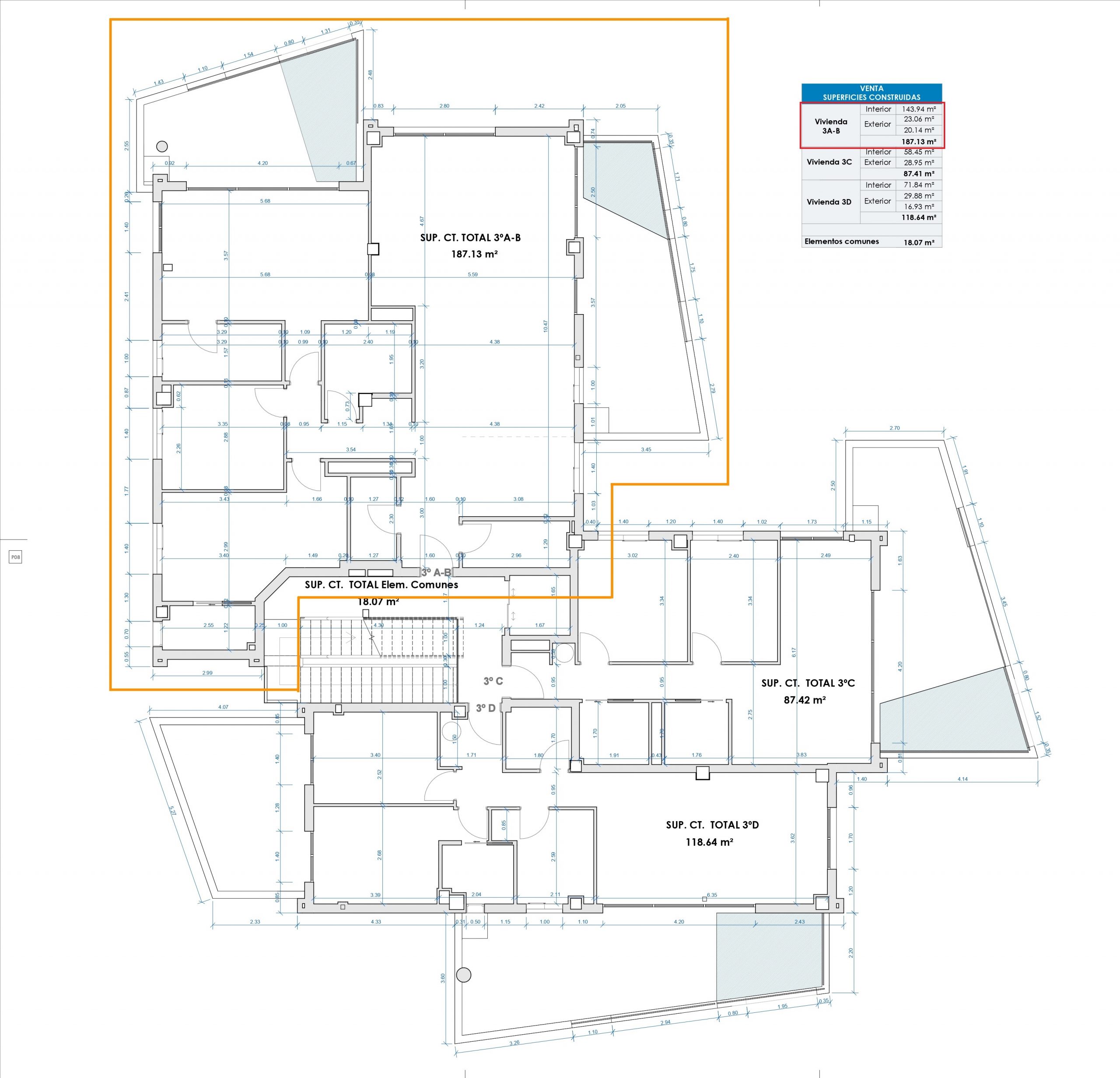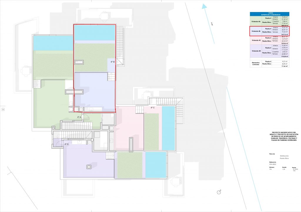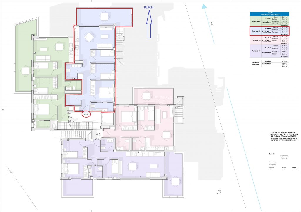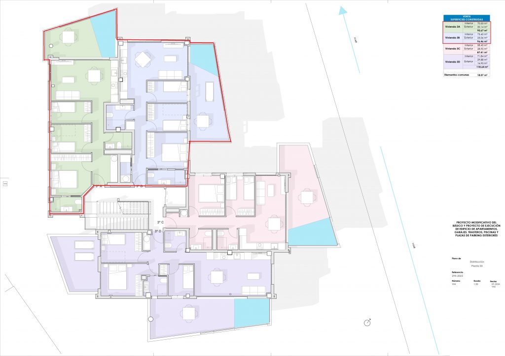 The project aims to provide the best views and the best possible orientation for all residents. That is why it is structured in two wings turned away from the street, subdivided into two viewpoints where the main rooms are located. This is how the four apartments per floor are configured.