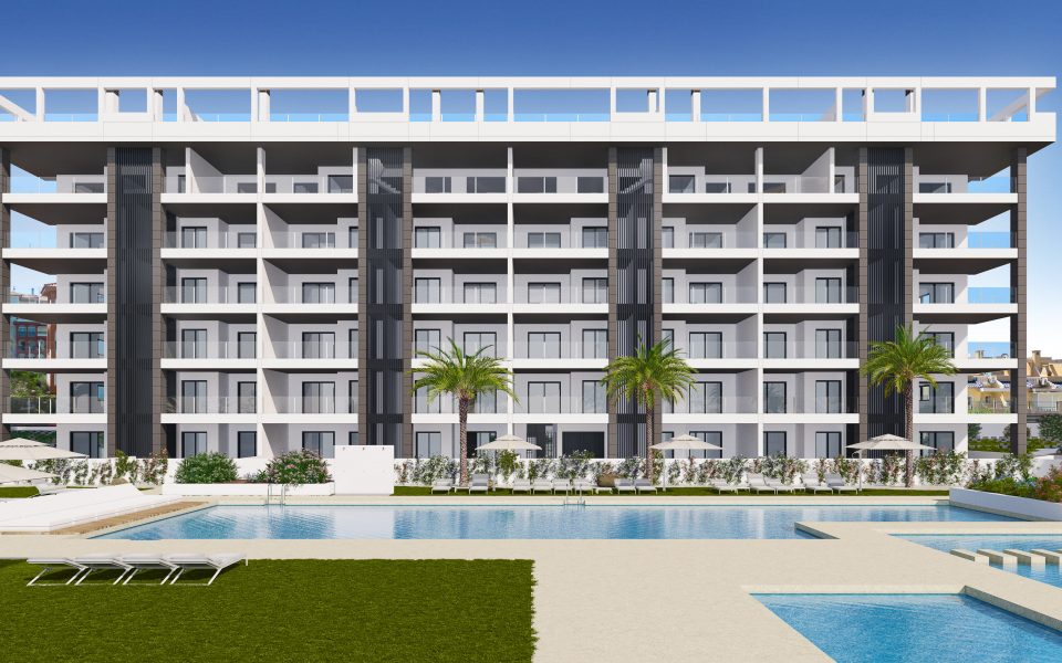 These turnkey apartments in Torrevieja are the first in a luxury residential development with exceptional views of the Mediterranean Sea. Just 700 meters from La Mata beach, 40 minutes from Alicante airport, in the heart of the city and with all day-to-day services at your fingertips.
