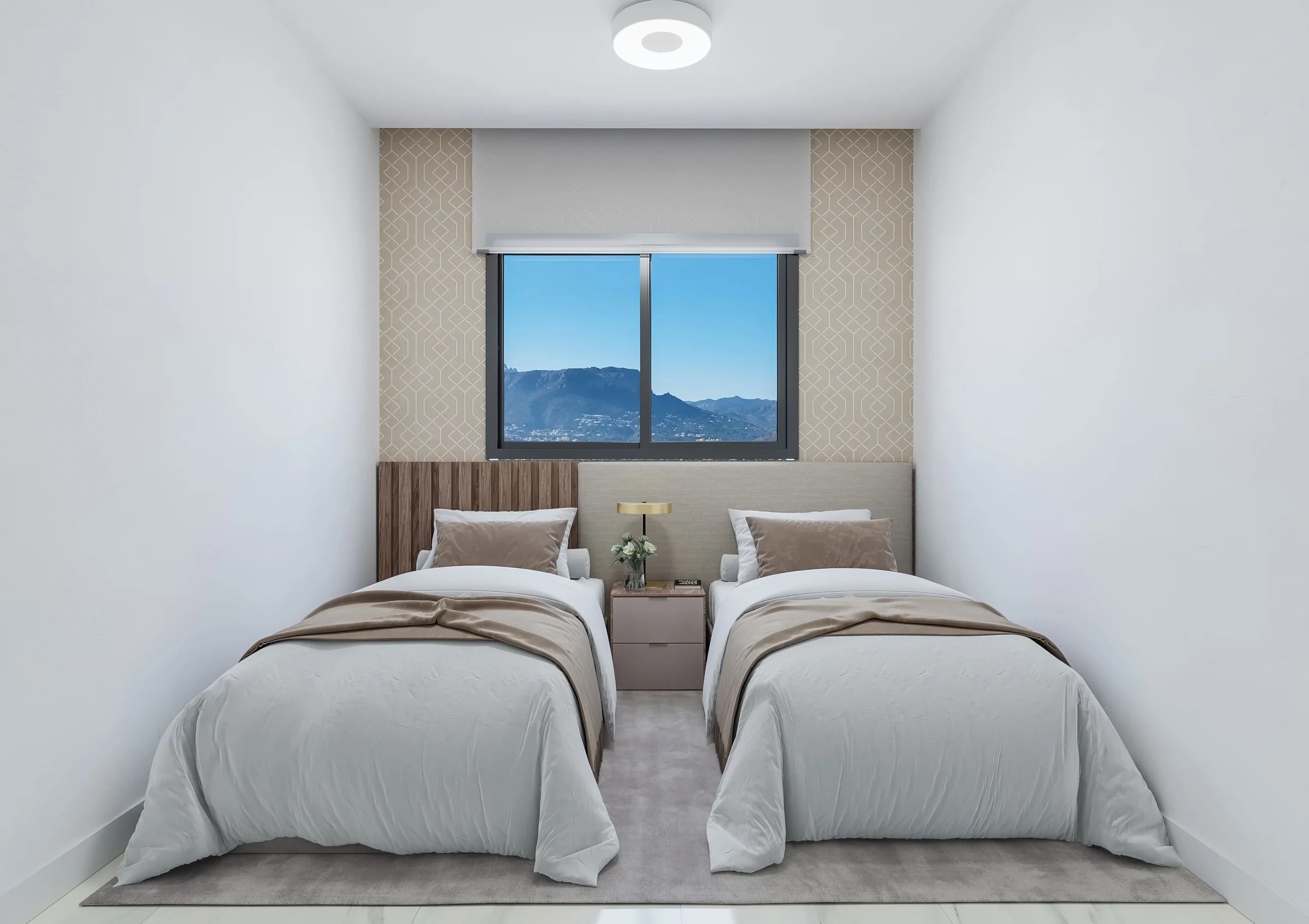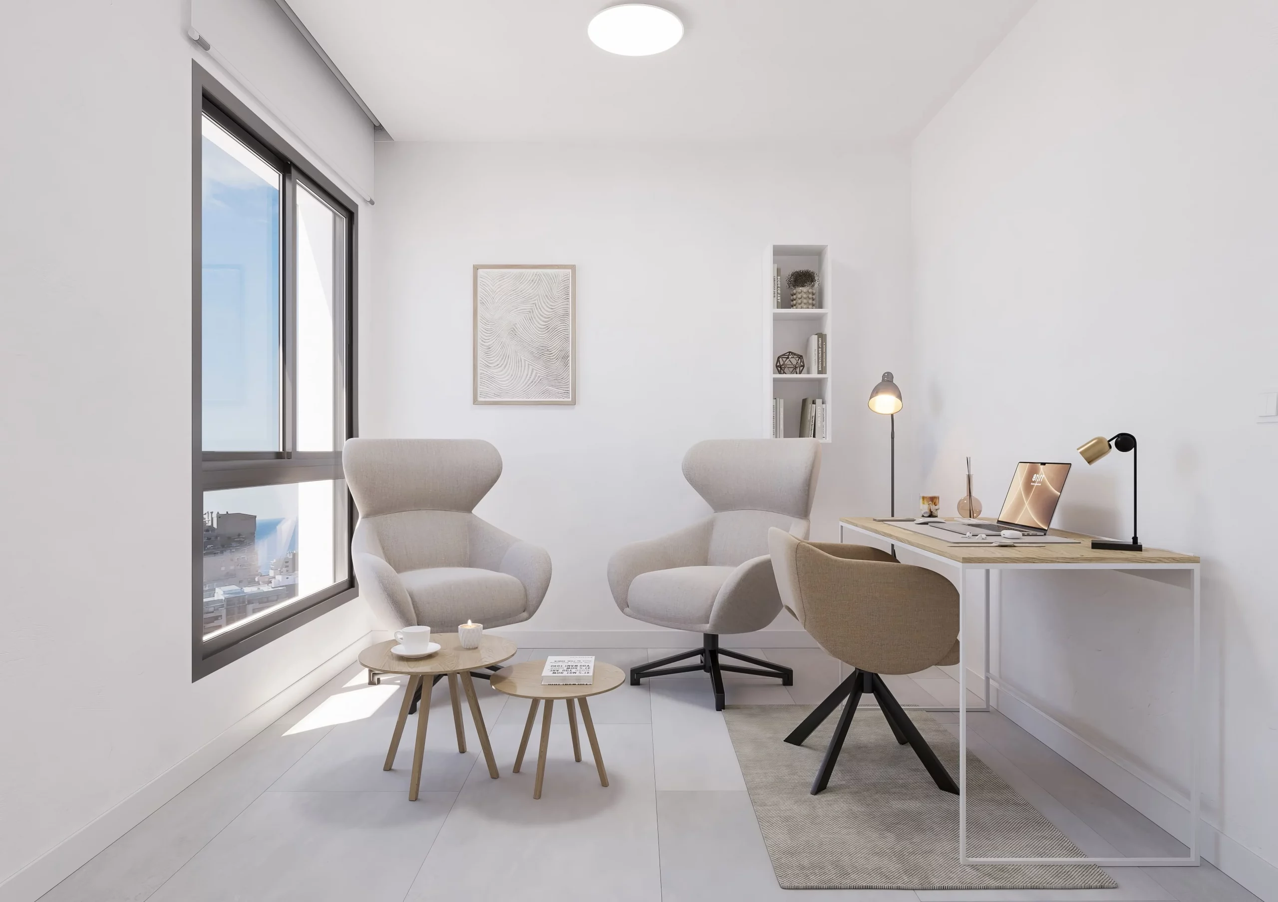 The residential complex comprises two 18-storey towers offering magnificent views of the Mediterranean Sea, from where you can hear the sea breeze on the calmest nights.