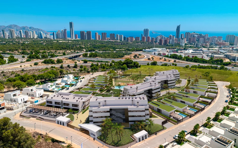 Just minutes from the iconic Asia Gardens Hotel, these homes are set in a privileged environment with breathtaking views of the Benidorm skyline and the imposing peak of Puig Campana.