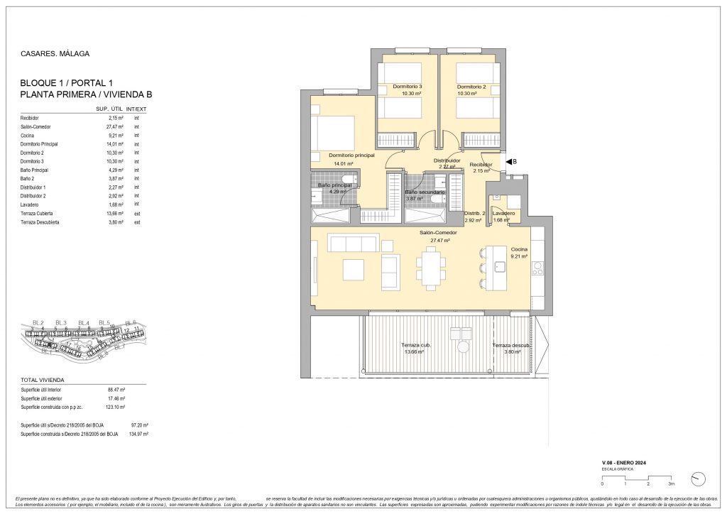 This residential complex in Casares comprises a total of 134 2-, 3- and 4-bedroom apartments in 9 blocks of 2 and 3 storeys, whose avant-garde, modern design blends comfort with the adjoining golf course.
