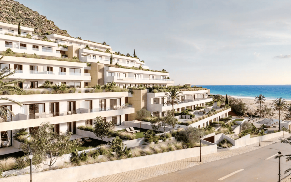 Le projet d’ppartements en front de mer à Mojácar se compose de 125 logements équipés d’incroyables terrasses, des penthouses spectaculaires et des appartements au rez-de-chaussée avec jardins et piscines privées.