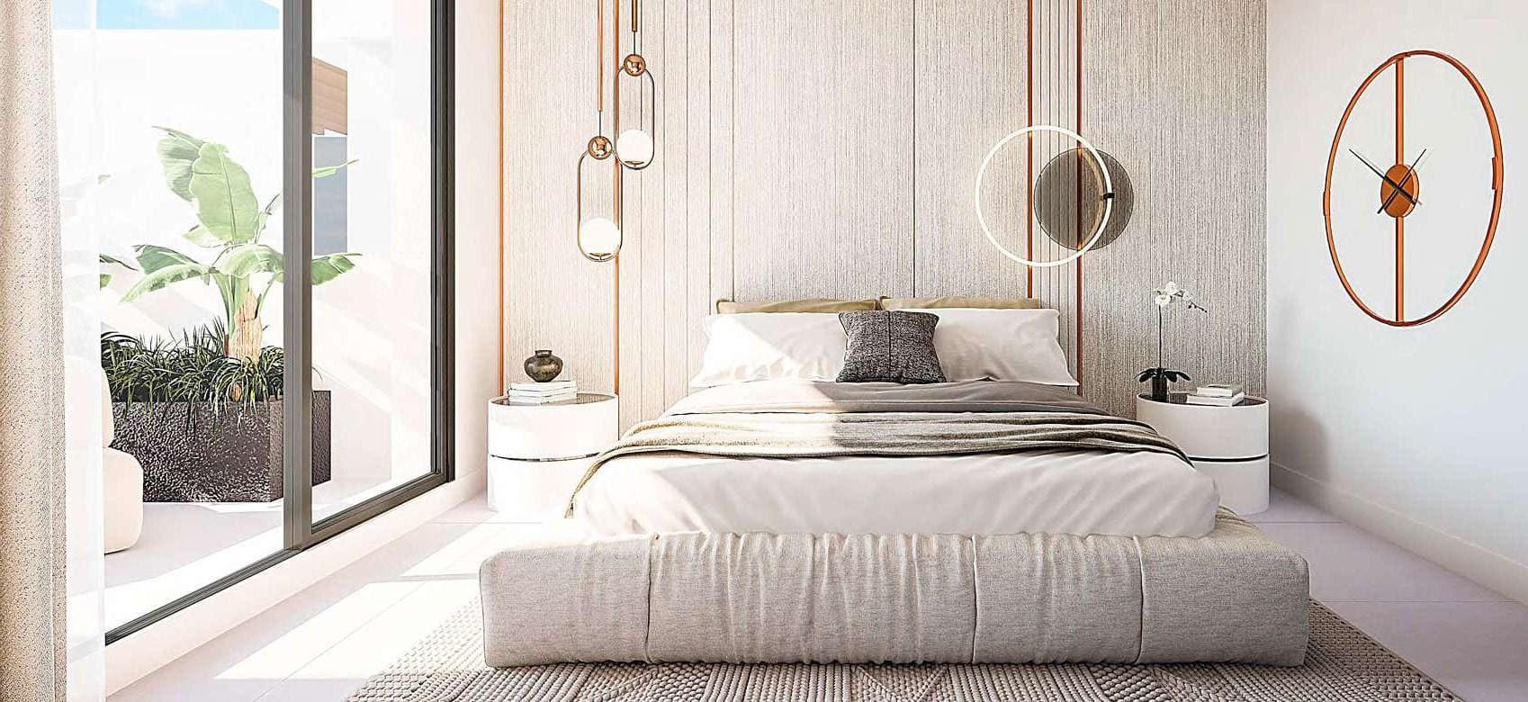 Les espaces extérieurs de ce projet sont tout aussi uniques et exclusifs pour profiter d’un style de vie luxueux. Les espaces communs comprennent des zones polyvalentes, des plans d’eau et des jardins d’inspiration tropicale qui font de ce projet un complexe privé de luxe. La piscine commune extérieure, la salle de sport entièrement équipée et les jardins potagers vous permettront de maintenir un mode de vie sain et actif.