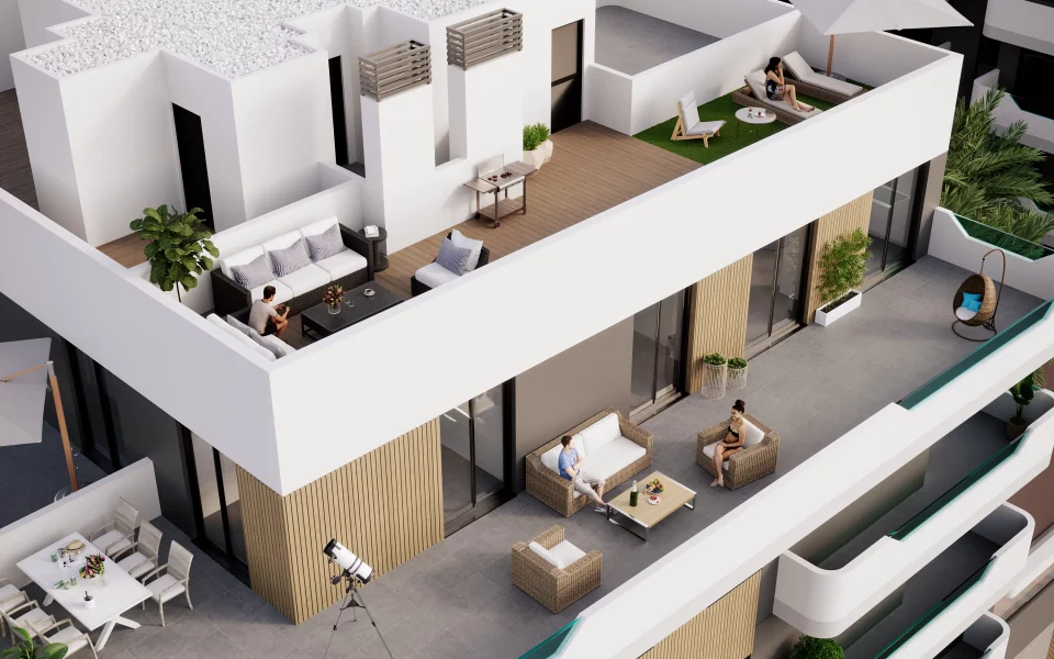 Différents types d’appartements et de penthouses sont disponibles, avec deux et trois chambres à coucher, tous avec deux salles de bains. Des maisons au design avant-gardiste et aux meilleures qualités à seulement 700 mètres de la plage et à proximité de tous les services tels que la gare routière.