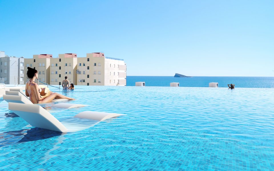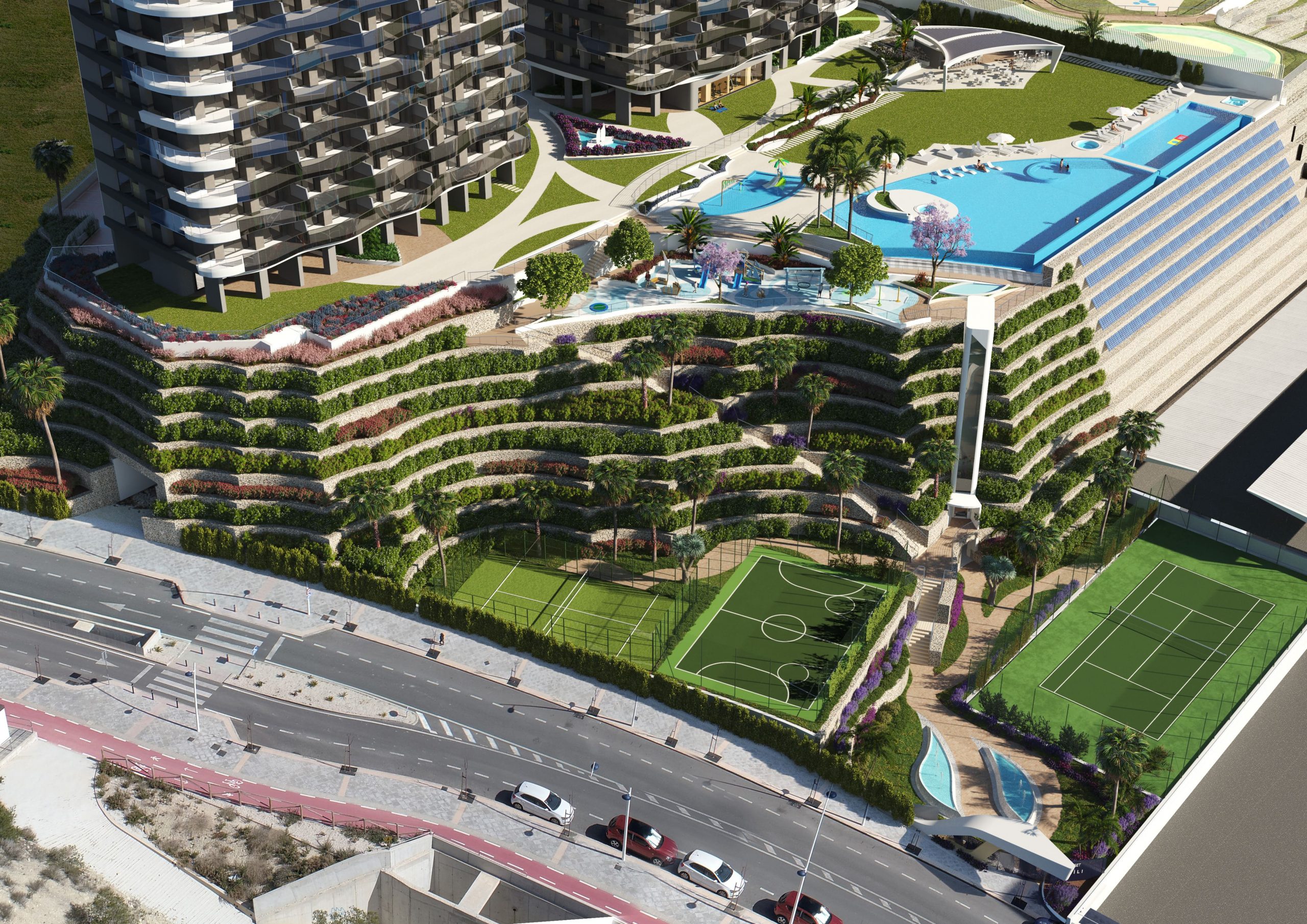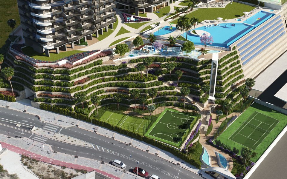 Ce programme immobilier neuf, dont tous les appartements sont orientés plein sud, est organisé en deux grandes plateformes paysagères surplombant la mer et adaptées au terrain des rues environnantes. Grâce à ces différences de niveaux et à une conception basée sur le bien-être des résidents, toutes les propriétés auront des vues frontales sur la mer et pourront admirer l’horizon et l’île iconique de Benidorm.