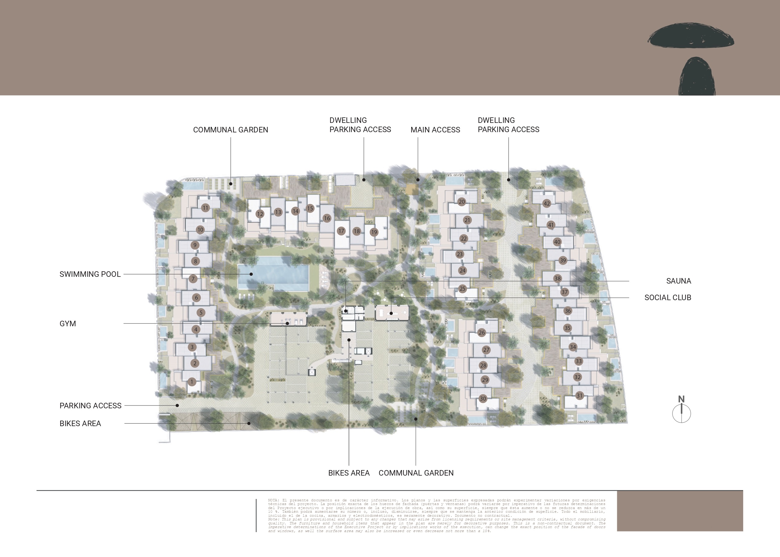 Les espaces communs du complexe suivent cette ligne profondément naturelle. En vous promenant dans ses différentes zones, vous trouverez des espaces idéaux pour flâner, pratiquer des sports et, surtout, faire du vélo. Retrouvez votre conjoint, votre famille ou vos amis dans les clubs sociaux, profitez des places ouvertes à l’abri du soleil et détendez-vous dans des endroits frais où la végétation pousse et où l’air circule en permanence.