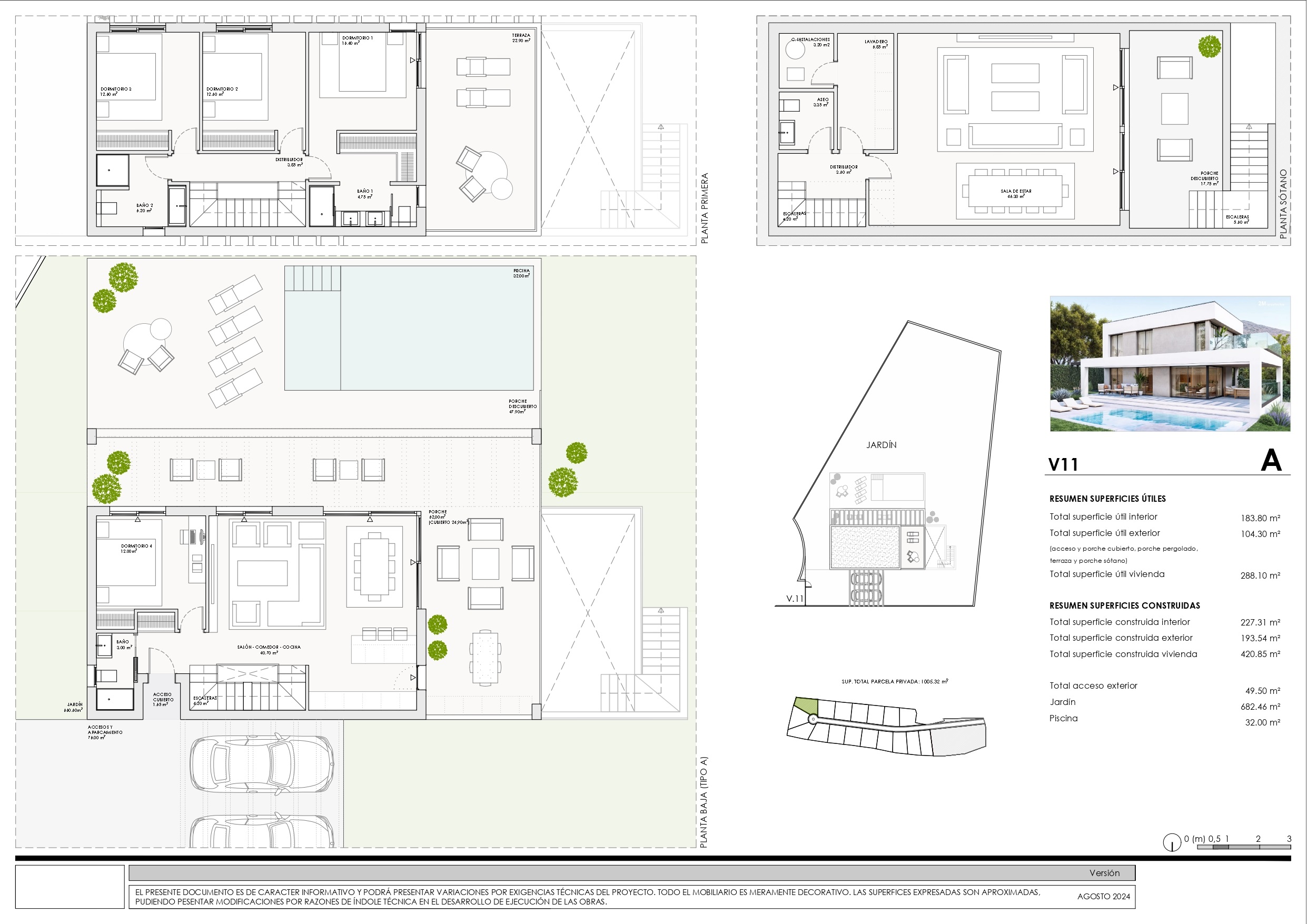 Chaque villa a été conçue avec une attention méticuleuse aux détails, offrant une surface construite de 400 m² sur un terrain plat de 1 000 m². Les maisons disposent de 4 chambres, ce qui permet à chaque membre de la famille de jouir d’un espace privé. L’aménagement intérieur a été soigneusement planifié pour maximiser la fonctionnalité et le confort, avec des espaces ouverts et lumineux qui vous invitent à profiter de chaque recoin de la maison.