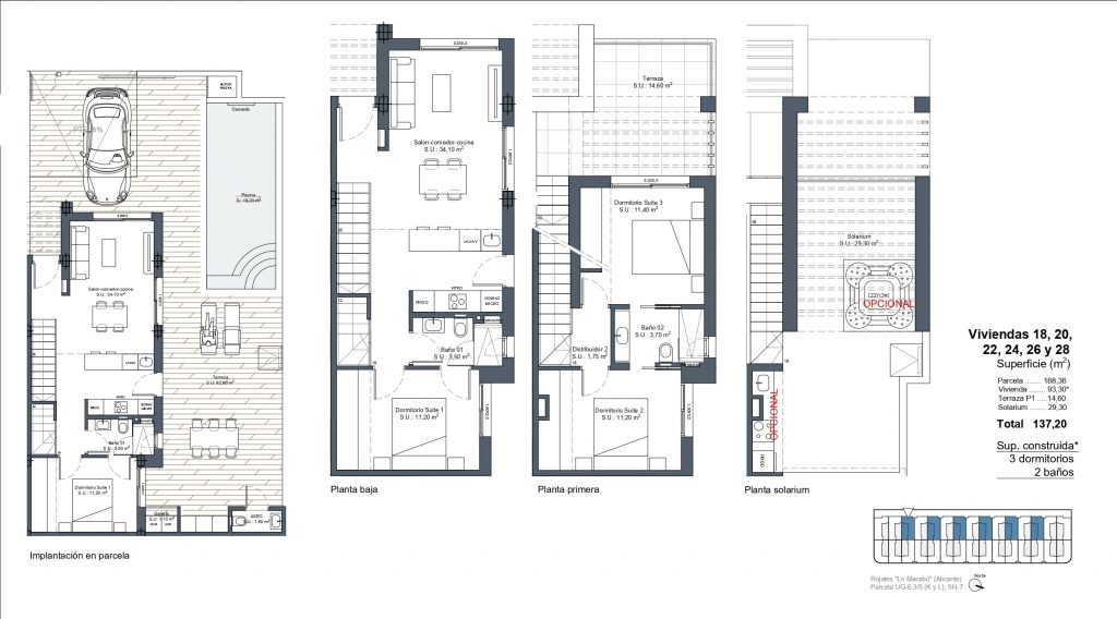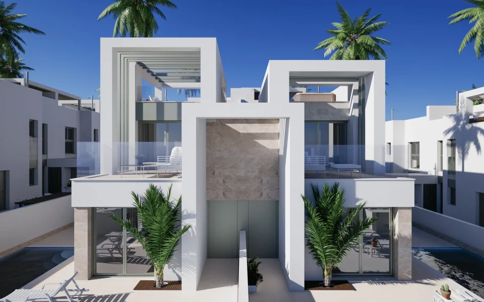 Ce luxueux programme neuf à Ciudad Quesada est un nouveau complexe résidentiel exclusif qui se compose de 28 élégantes villas jumelées, chacune avec 3 chambres et 2 salles de bains. 2 villas individuelles supplémentaires sont disponibles avec l’option d’un sous-sol, 3 chambres à coucher, 3 salles de bains.