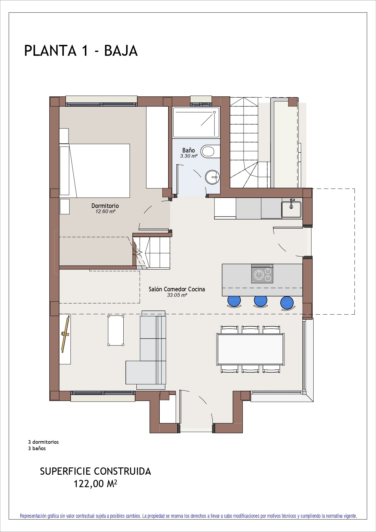 Tous deux avec piscine de 6×3 mètres et sur un terrain de 230 mètres carrés environ. Le tout situé à seulement 2 minutes à pied de la plage de Vera.