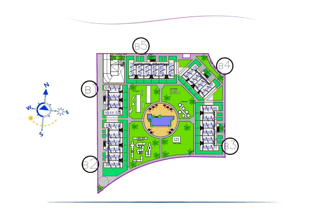 Tous les logements disposeront d’une place de parking et d’un espace de stockage au sous-sol, accessible par les escaliers communs ou l’ascenseur de chaque étage. Les espaces communs seront composés d’une zone piscine, d’une zone de réception, d’une salle de réunion, d’un gymnase en plein air, d’un, terrain de pétanque, un mini golf et Spa.
