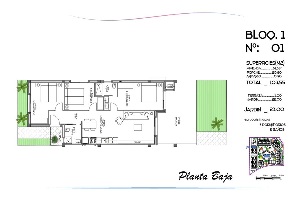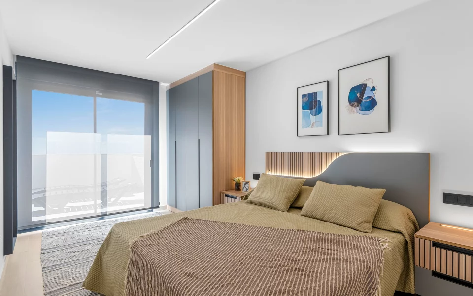 Toutes les propriétés de 3 chambres à coucher sont situées sur un coin, ce qui les rend encore plus exclusives pour les résidents. Parmi ceux-ci, nous proposons des propriétés orientées au sud, à l’est et à l’ouest. Tous sont dotés de terrasses/porches donnant sur l’espace vert et la lagune de La Mata. Depuis toutes les propriétés du premier étage, vous pourrez profiter de vues privilégiées sur la lagune de La Mata, puisque, étant le dernier projet adjacent, vous aurez une vue panoramique de rêve sur ce lieu paradisiaque.