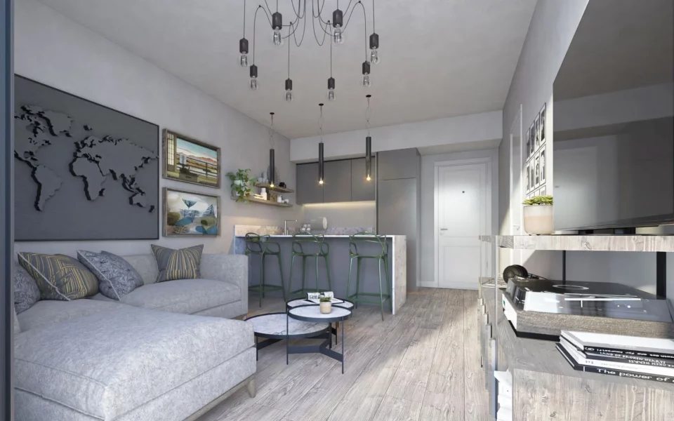 - Des cuisines modernes équipées d’appareils électroménagers haut de gamme et d’armoires élégantes.