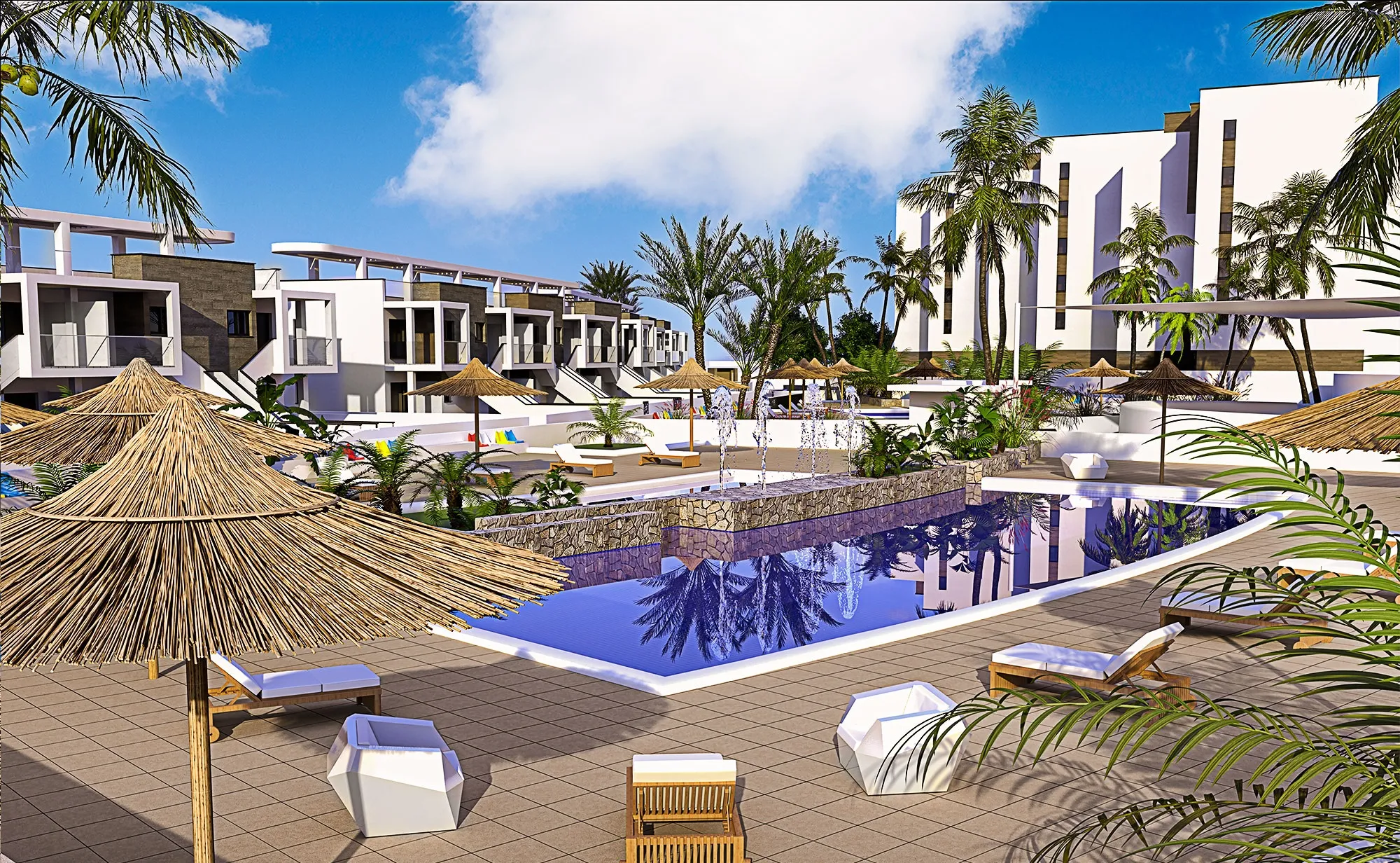 Cette résidence de bord de mer située à Mil Palmeras est parfaitement intégrée dans un environnement privilégié, à seulement 600 mètres de l’une des meilleures plages de la Costa Blanca. La première phase se compose de 24 appartements de 2 et 3 chambres et de 12 bungalows de 2 chambres et 2 salles de bains. Elle dispose de vastes zones de jardin, de places de parking et de piscines communes pour adultes et enfants.