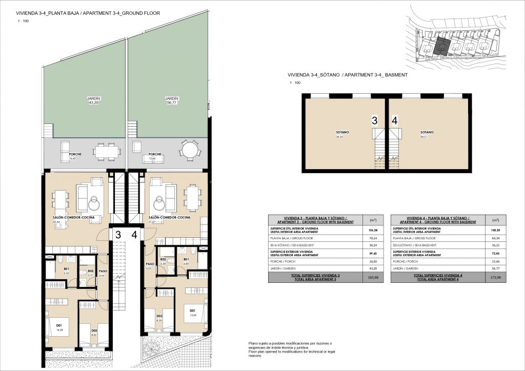 Les appartements du rez-de-chaussée disposent d’un grand jardin avec vue sur la mer et d’un espace suffisant pour une piscine privée, ainsi que d’un demi-sous-sol permettant d’ajouter des chambres.