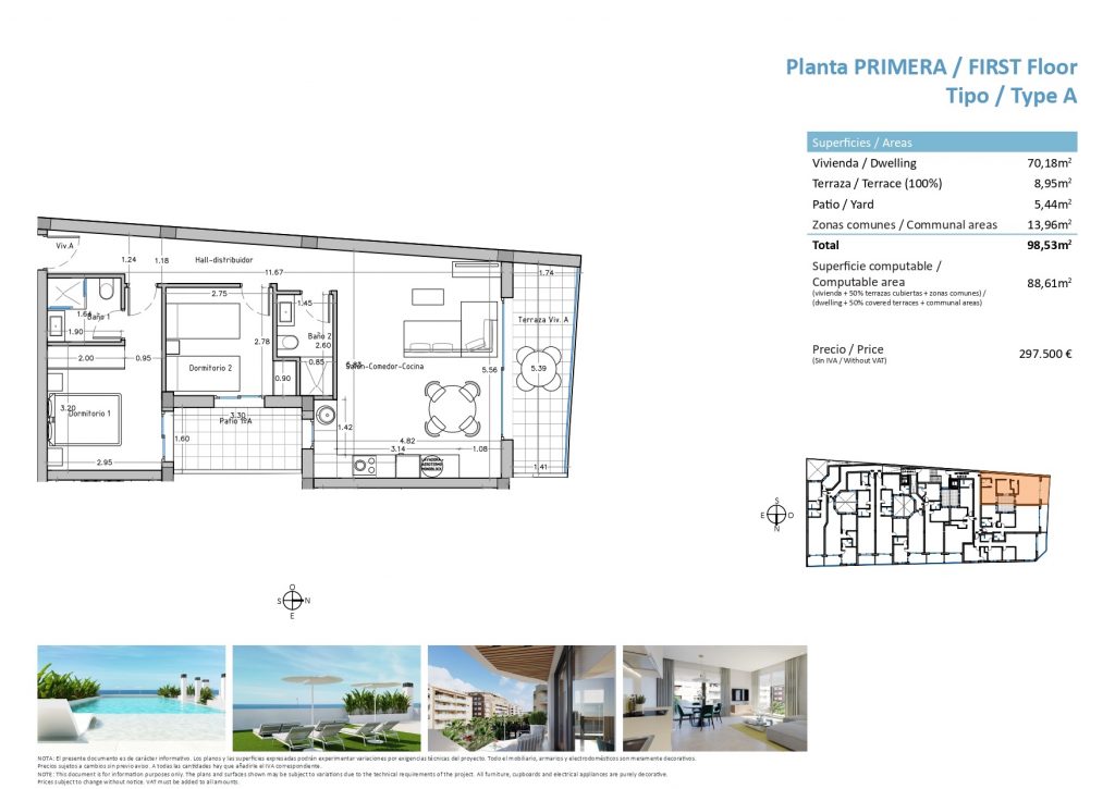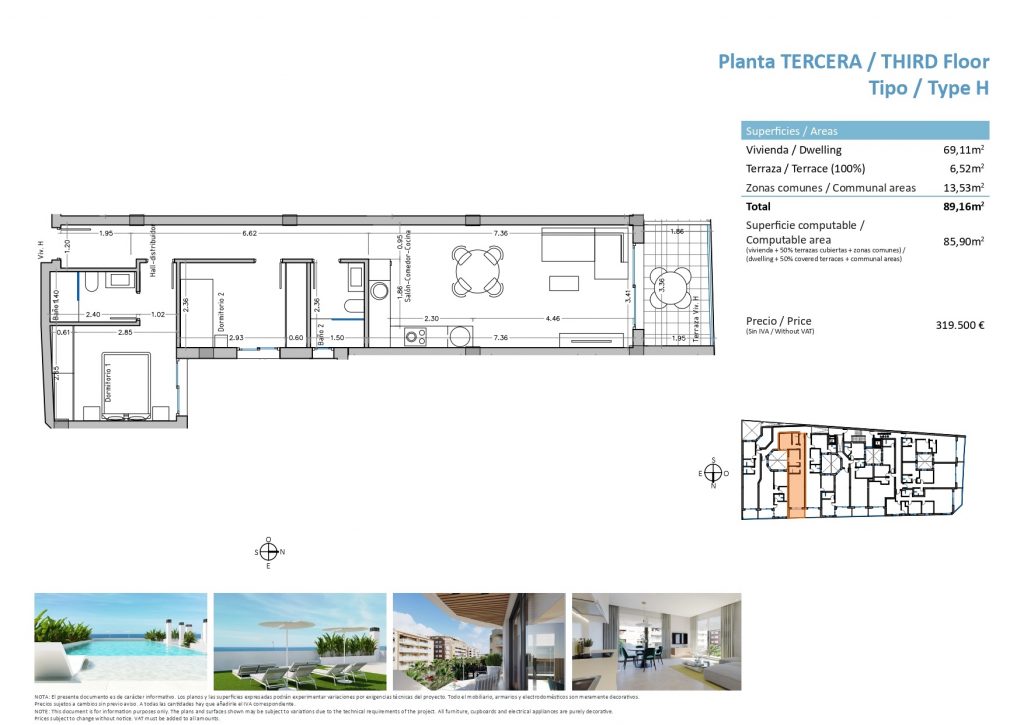 Dans l’une des zones les plus recherchées de Guardamar del Segura, sur l’avenue centrale très convoitée, cet immeuble résidentiel s’élèvera majestueusement pour héberger une poignée de privilégiés. Une œuvre architecturale qui deviendra le choix parfait pour ceux qui recherchent un logement unique, grâce à sa proximité de la plage, à moins de 100 mètres, et à son large éventail de services et d’équipements. Ses installations, dont une piscine et un solarium sur le toit, permettront aux heureux résidents de se détendre et de se divertir comme jamais auparavant.