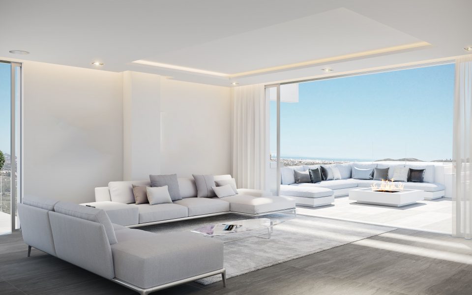 Le programme neuf est situé en première ligne de La Cala Golf, sur les contreforts de la Sierra de Mijas, avec une vue imprenable sur la campagne andalouse et la Méditerranée. Dans ce projet exclusif, l’esthétique contemporaine s’allie à des matériaux de haute qualité pour offrir une résidence sophistiquée et fonctionnelle. Les sols en porcelaine de grand format apportent élégance et continuité aux espaces, créant une sensation d’espace et de modernité dans chaque pièce.